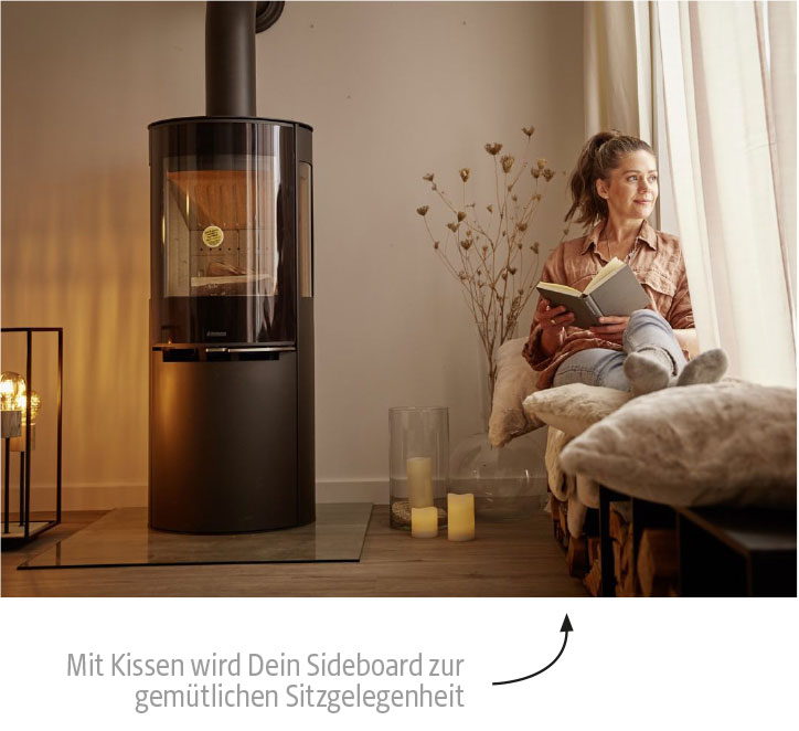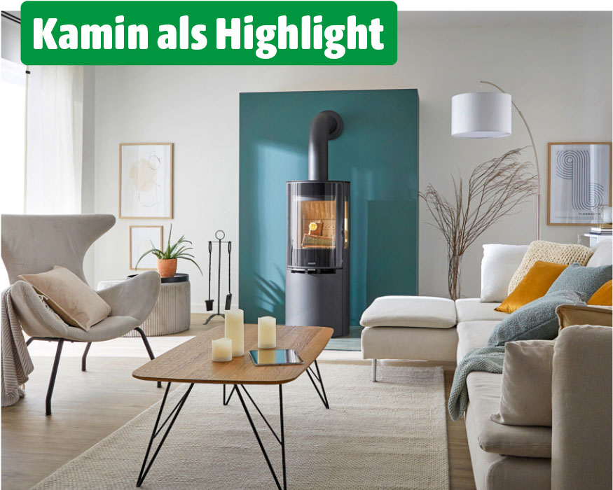 Du kannst Deinen Kaminofen als Stil-Element in Deinen Wohnraum integrieren und so ein ganz besonderes Wohnambiente schaffen. Damit ein harmonisches Gesamtbild entsteht, setze Holz als dekoratives Element ein und kombiniere Möbel und Accessoires aus natürlichen Materialien in warmen Tönen. Akustikpaneele erzeugen ein angenehmes Raumklima und lassen Deine Einrichtung modern wirken. Als Highlight kannst Du Stoff in einer Akzentfarbe wählen, das sorgt für den frischen Look.