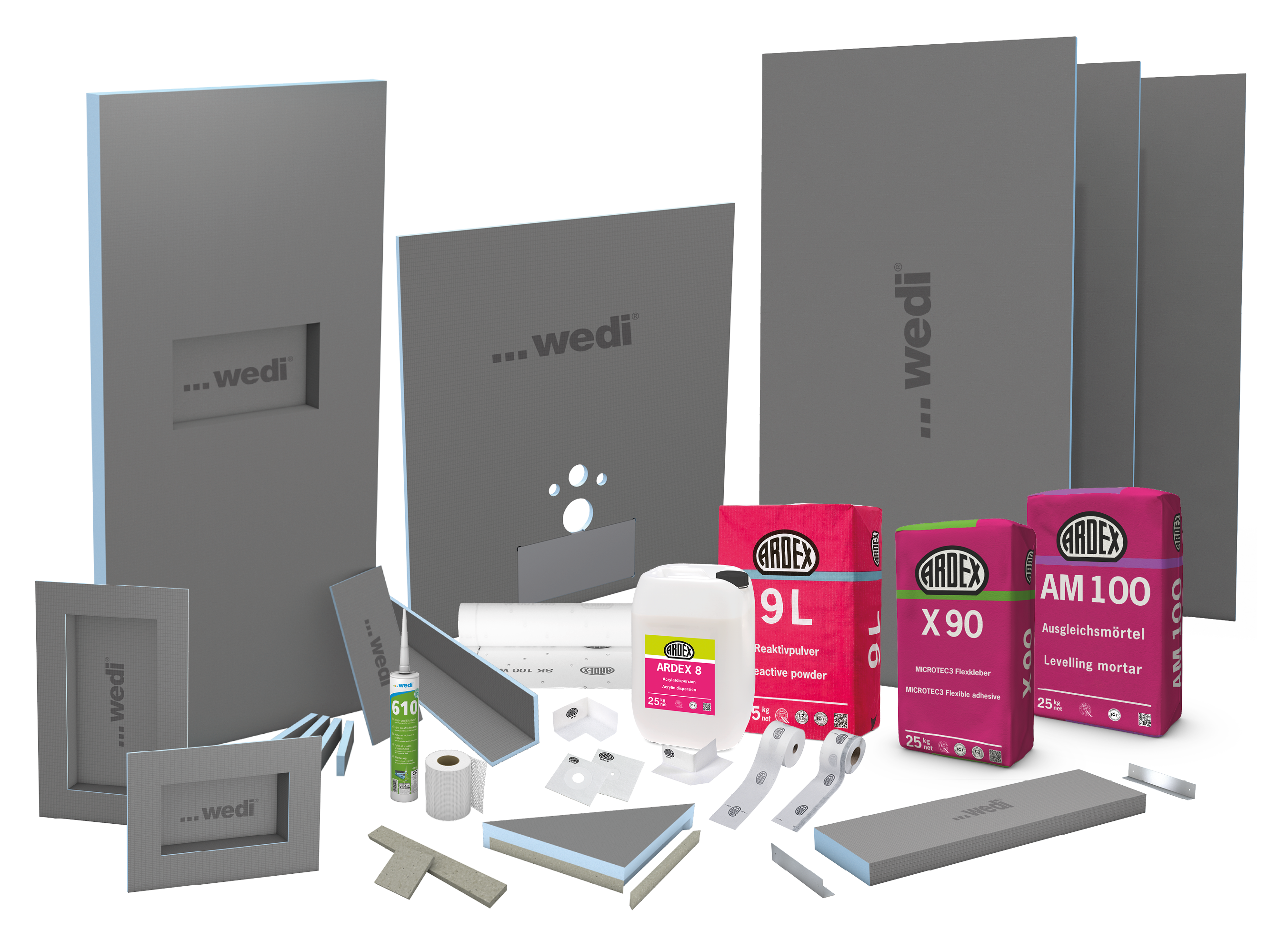 - Fertig abgedichtete und direkt verfliesbare Produktsysteme