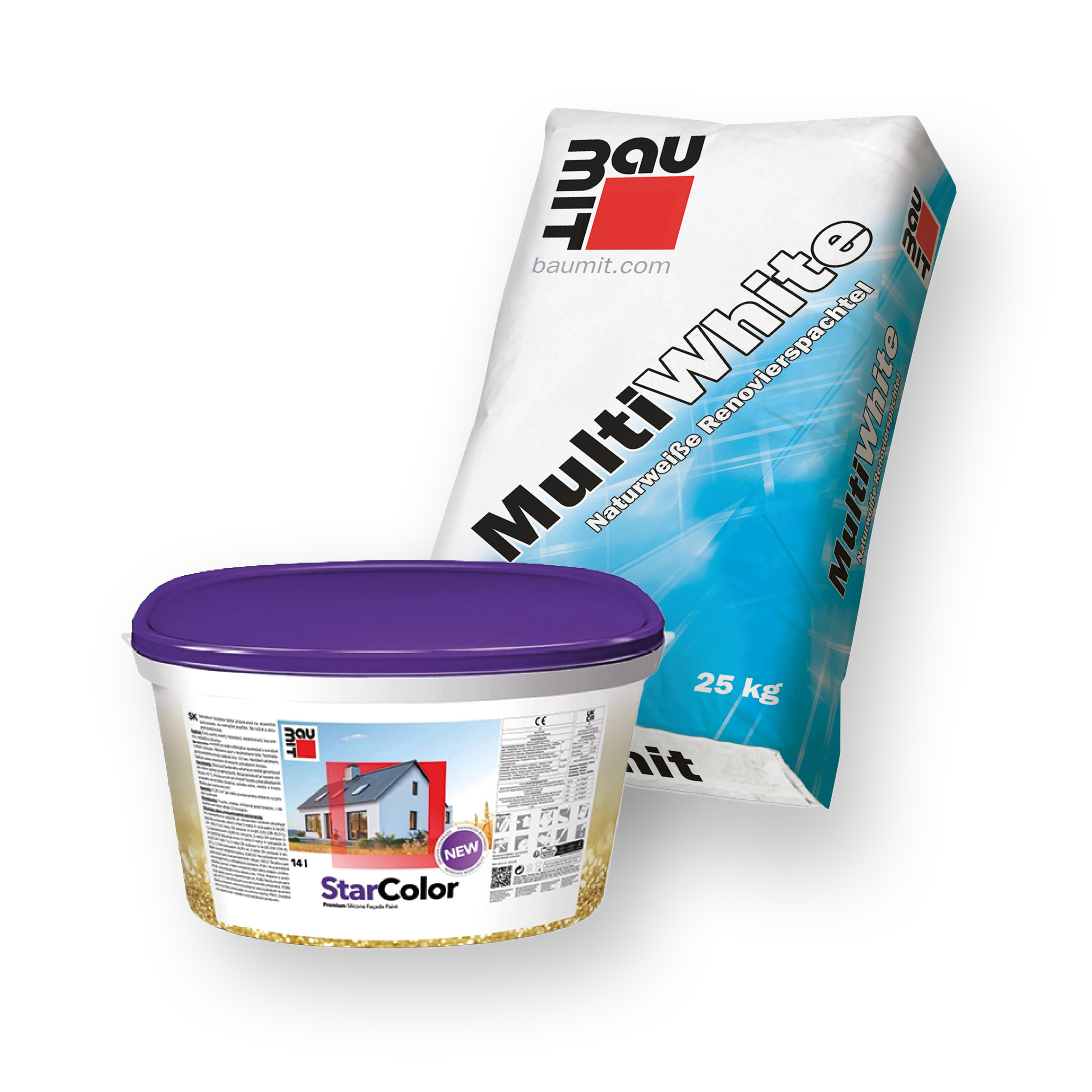 Vor einem neuen Fassadenanstrich prüft man den Zustand der Fassadenfläche auf Risse, Abplatzungen oder Beschädigungen. Dann werden die Sanierungsmaßnahmen geplant und umgesetzt. Bei Rissen und Abplatzungen überzeugt Baumit MultiWhite dank innovativer Formel durch einfache und sichere Verarbeitung, hohe Strapazierfähigkeit und ausreichende Flexibilität. Gemeinsam mit der gebrauchsfertigen Premium-Silikonharzfassadenfarbe Baumit StarColor ist die Fassade für die nächsten Jahrzehnte bestens gerüstet.