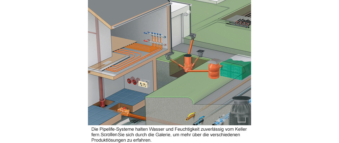 Wasser und Feuchtigkeit können im Keller für gefährlichen Schimmel sorgen. Die Produkte von Pipelife leiten Oberflächenwasser zuverlässig ab oder versickern es effektiv an Ort und Stelle und sorgen damit für einen trockenen Keller.