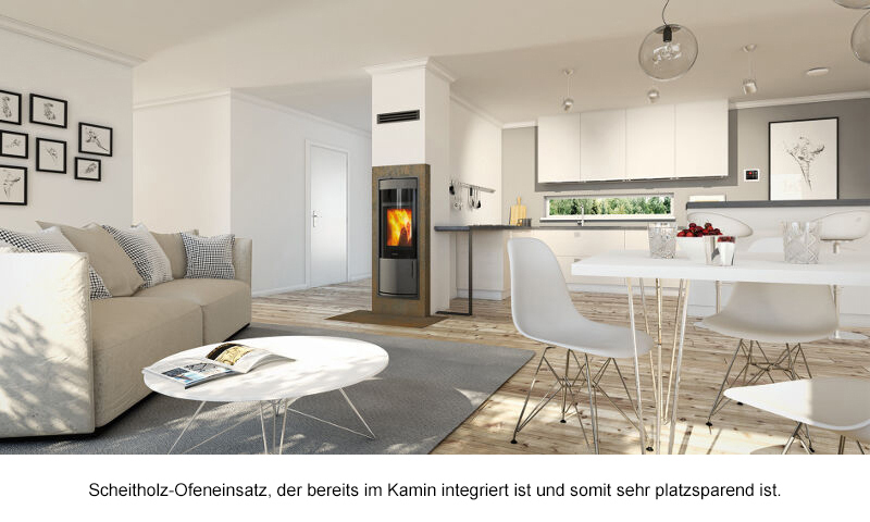 Ob mit Holzlager, Sitzfläche oder platzsparend und raumintegriert im Treppenaufgang: Die Ofensysteme von Schiedel lassen sich nach Belieben verkleiden und als wärmespendendes Möbelstück setzen sie gemütliche Akzente in jedem Raum.